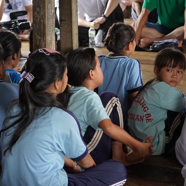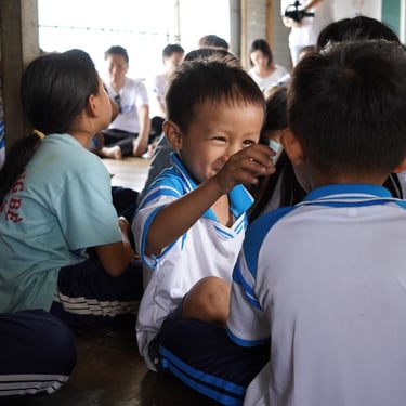 The journey took over 3 hours, through roads, carts, and finally a small boat – all to reach this special classroom. No whiteboards, no fancy desks… only laughter, bright eyes, and an unyielding love for learning.